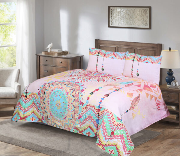 Featuring a unique and vibrant printed design, this bedsheet effortlessly complements any bedroom décor, adding a touch of elegance and charm. The fabric’s breathable nature ensures a cool and comfortable night’s sleep, while its easy-care properties make it a practical choice for everyday use.